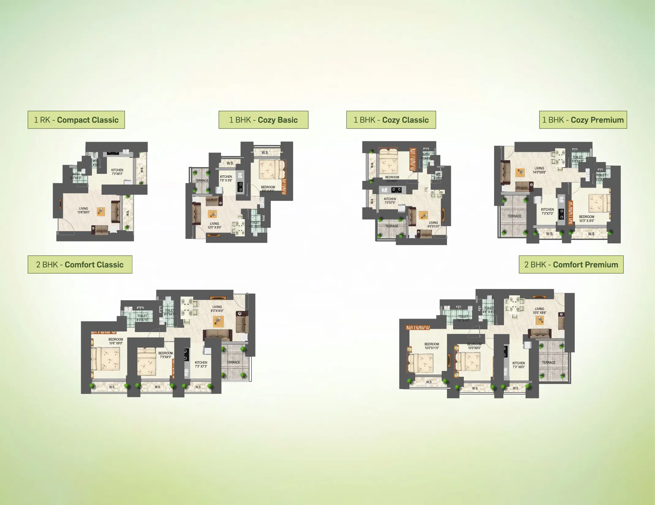 Designed to perfectly represent our project in a presentable format, here’s a glimpse of the comfortable space you get to revel in as you make the choice for your future, available in 1 and 2 BHK configurations.